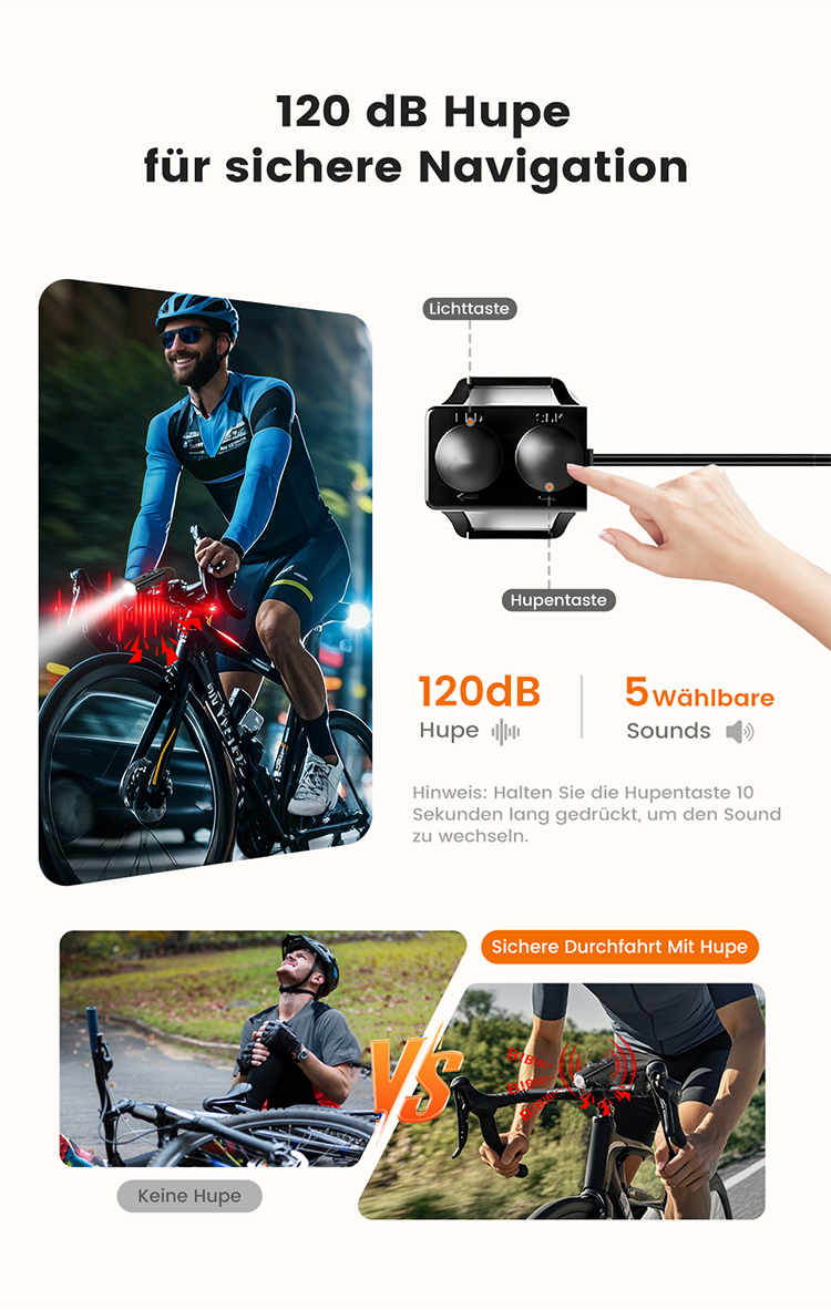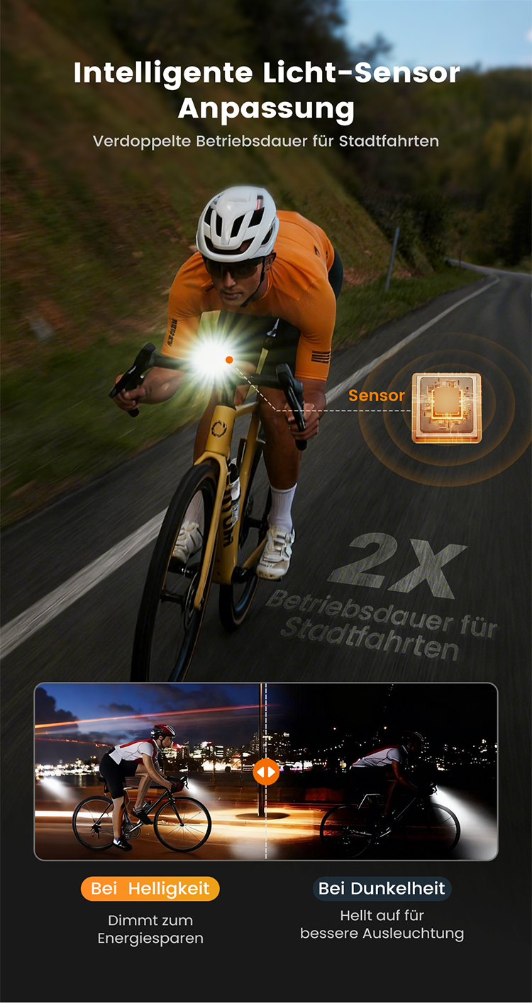 Ultrahohe Leuchtkraft (z. B. 1200 Lumen oder mehr) – damit du Hindernisse frühzeitig siehst und gesehen wirst.