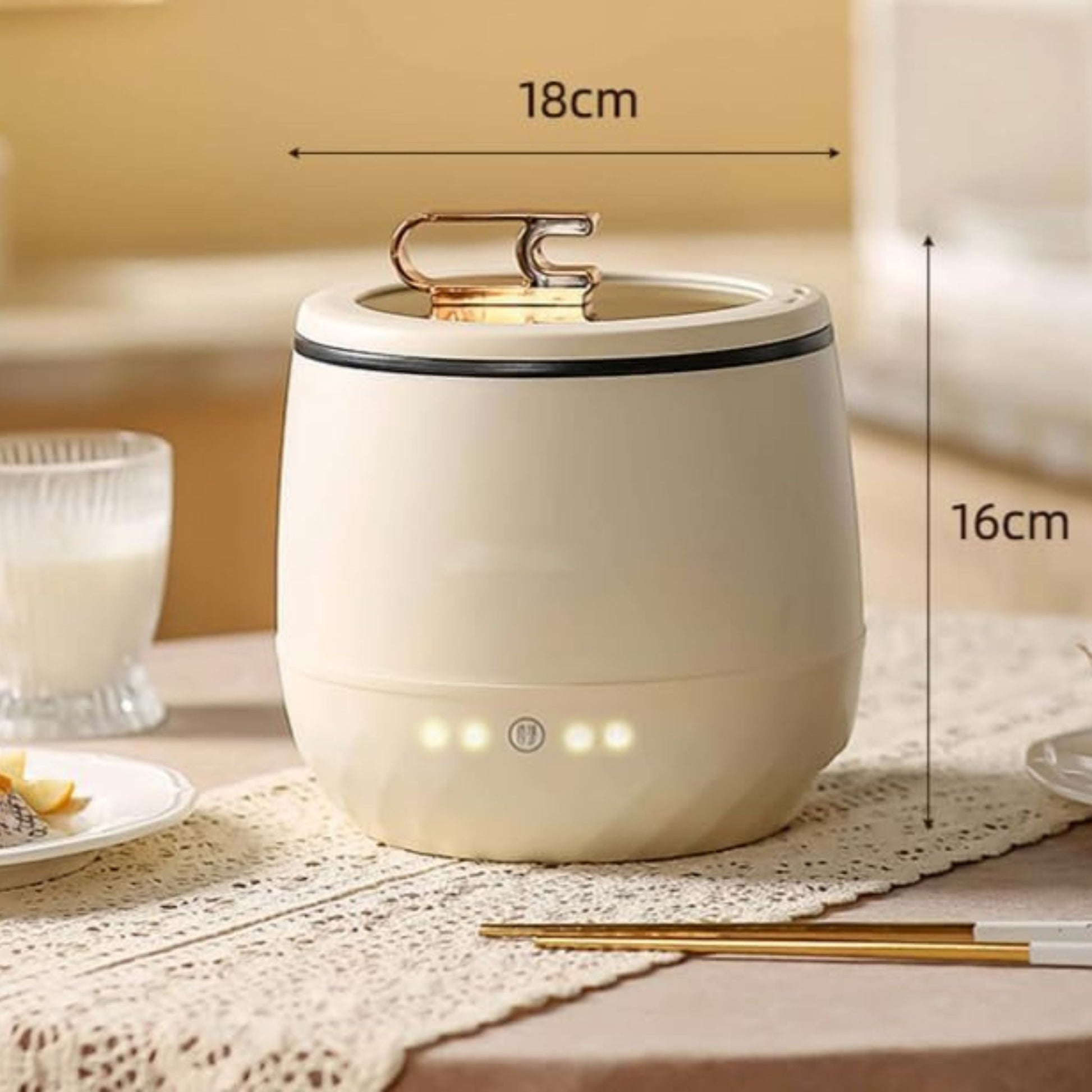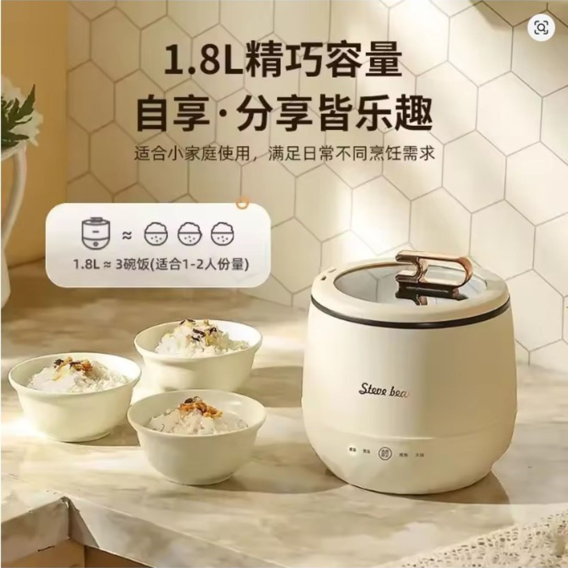 Kapazität: ca. 1,8 Liter (für 1–2 Portionen) Leistung: 350 W Spannung: 220 V / 110 V Modi: Reis, Suppe, Schmoren, Warmhalten, Timer Abmessungen: ca. 18 × 20 cm Gewicht: ca. 0,9 kg Farben: Beige, Hellblau